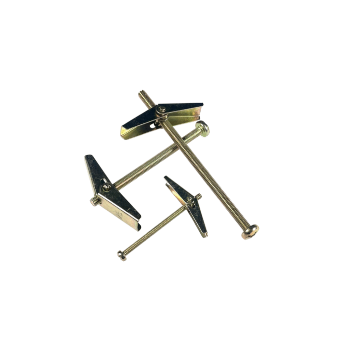 Spring Toggles are reliable cavity fixings designed for secure anchoring in hollow walls, ceilings, and panels such as plasterboard, drywall, chipboard, and other lightweight materials. Featuring a spring-loaded wing mechanism, the toggle expands behind the panel once inserted, creating a wide load-bearing surface that ensures a strong and dependable hold.