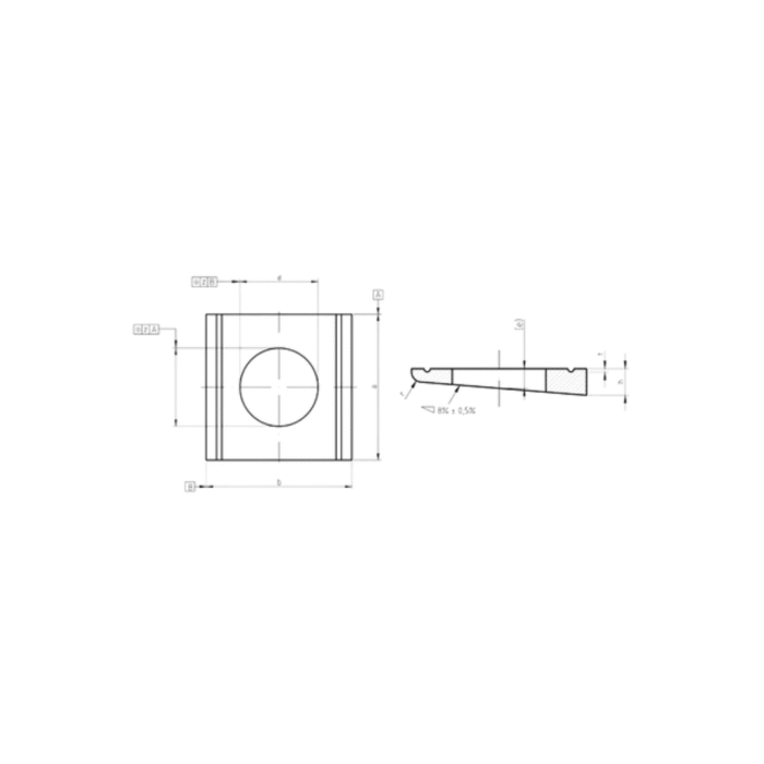 Taper Washer is a specially designed washer used to provide a level seating surface for bolts and nuts on angled or sloped surfaces. Its tapered shape compensates for uneven surfaces, ensuring proper load distribution and secure fastening. Taper Washers are commonly used in structural applications, such as with I-beams, channels, or other angled steel sections, where a flat washer would not provide correct alignment.